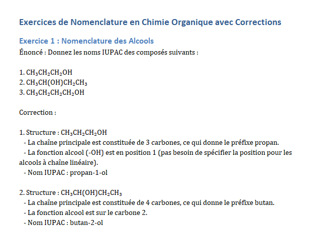 Exercices de Nomenclature en Chimie Organique avec Corrections Doc