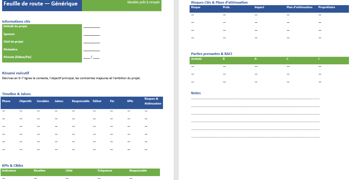 Feuille de route : modèles Word à remplir — du principe d’un roadmap à sa visualisation