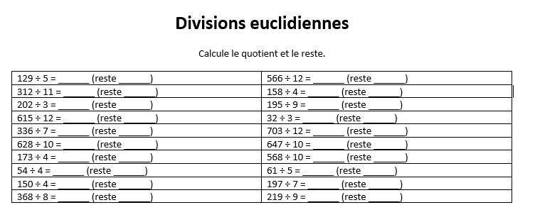 - Divisions euclidiennes — Quotient et reste, interprétation en phrase (partage équitable).