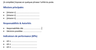 - Identification du Poste : Décrire le titre du poste, son département, le superviseur direct, le lieu de travail et d’autres informations pertinentes.