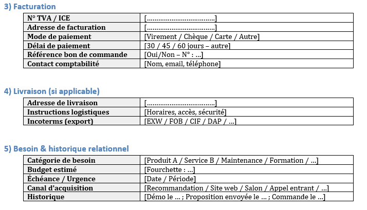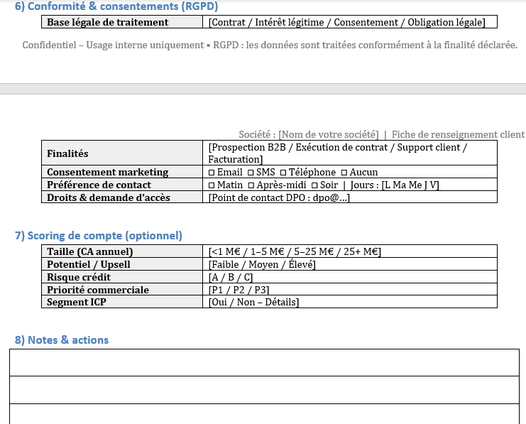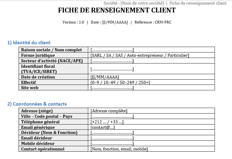 Fiche de renseignement client : Modèles Word + guide complet (conception, usages, conformité)