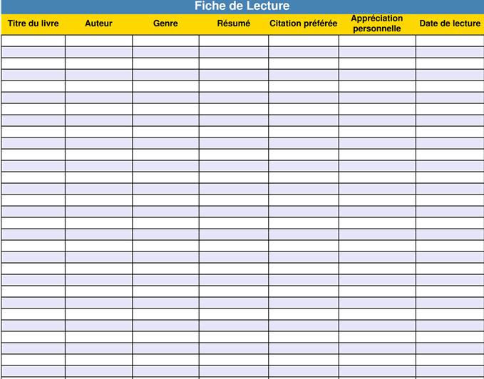 Voici les éléments essentiels d’une fiche de suivi de lectures :