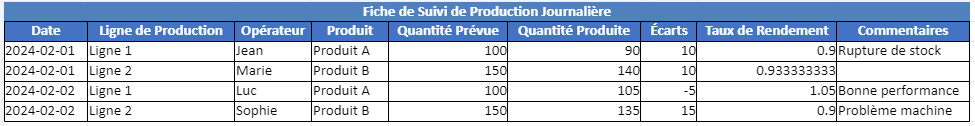 Fiche de Suivi de Production Journalier dans Excel : Modèle