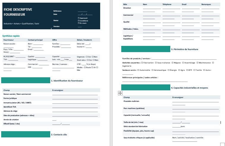 Fiche descriptive fournisseur (industrie) : Modèle Word à télécharger