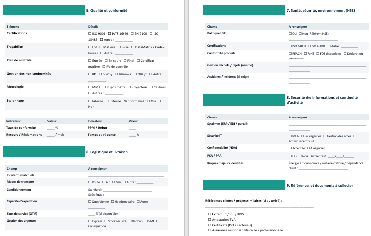 - Décider d’un référencement : valider qu’un fournisseur possède la capacité, l’organisation, les certificats, et la maîtrise technique attendus.