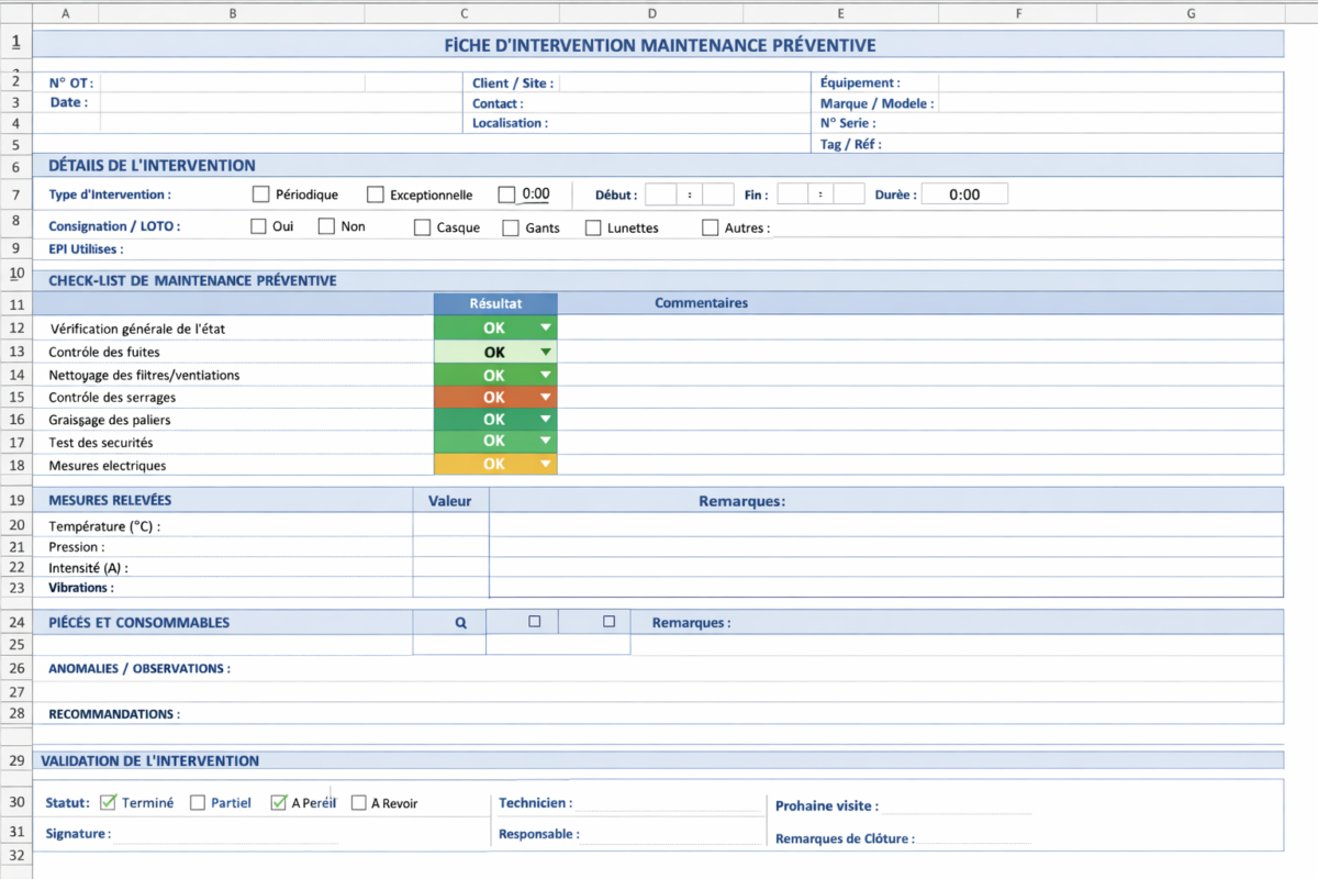 Le modèle Excel Fiche maintenance préventive à remplir et à imprimer