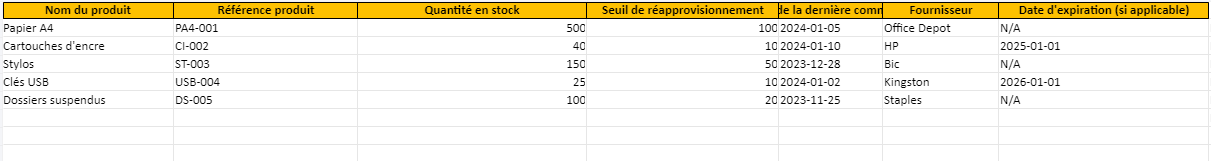 - Gestion des stocks : En enregistrant les quantités disponibles de chaque article, elle aide à planifier les besoins de réapprovisionnement et à éviter les ruptures de stock.