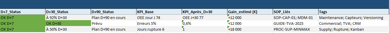 - KPI flash : voit-on déjà un effet (ex. -20 % de rework) ?