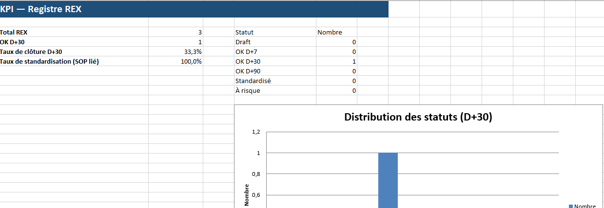 - Statut : Draft, D+7 ok, D+30 ok, D+90 ok, Standardisé.