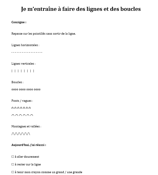Fiche 5 : lignes et boucles à repasser, entrer doucement dans la pré-écriture