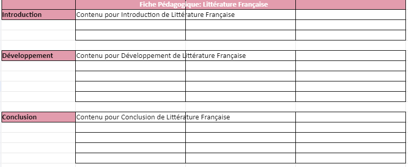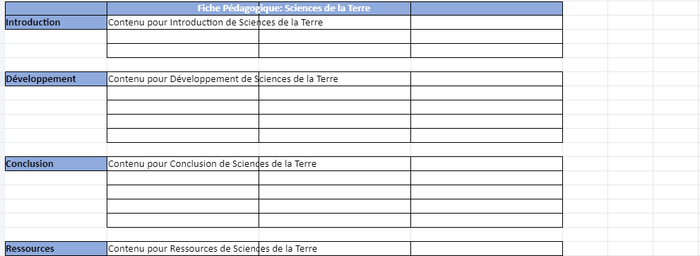 Fiches Pédagogiques : Modèles et Template au Format Excel