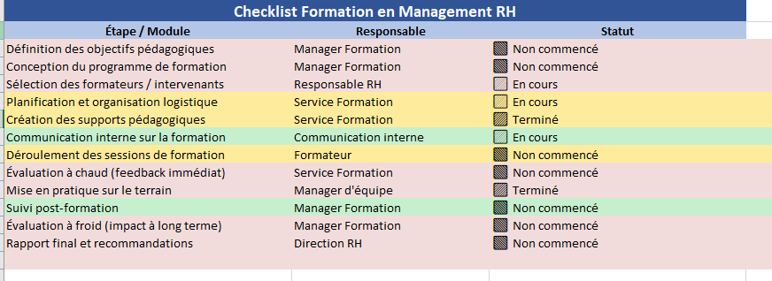 • Livrables : check-lists, modèles prêts à l’emploi, fiches réflexes “1 page”.