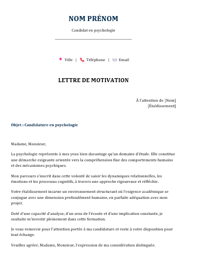 Télécharger 5 modèles de lettre de Motivation pour une Admission en Faculté de Psychologie