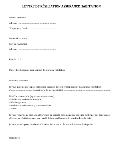 Requêtes associées : lettre résiliation assurance habitation • lettre de résiliation assurance • modèle lettre résiliation assurance