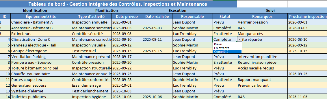Gestion intégrée des contrôles, inspections et maintenance en Facilities Management : Fichier Excel Automatisé