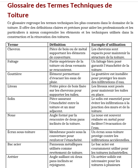 Glossaire des Termes Techniques de Toiture : Modèle Word
