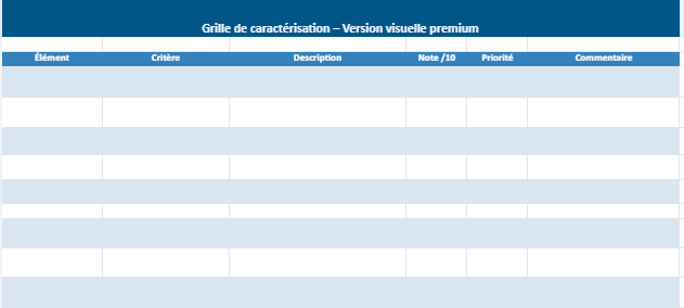 Une grille de caractérisation simple à remplir est un tableau structuré qui permet de classer des informations selon plusieurs critères. Elle aide à analyser un produit, une entreprise, une activité ou une situation en gardant une lecture claire et directe.