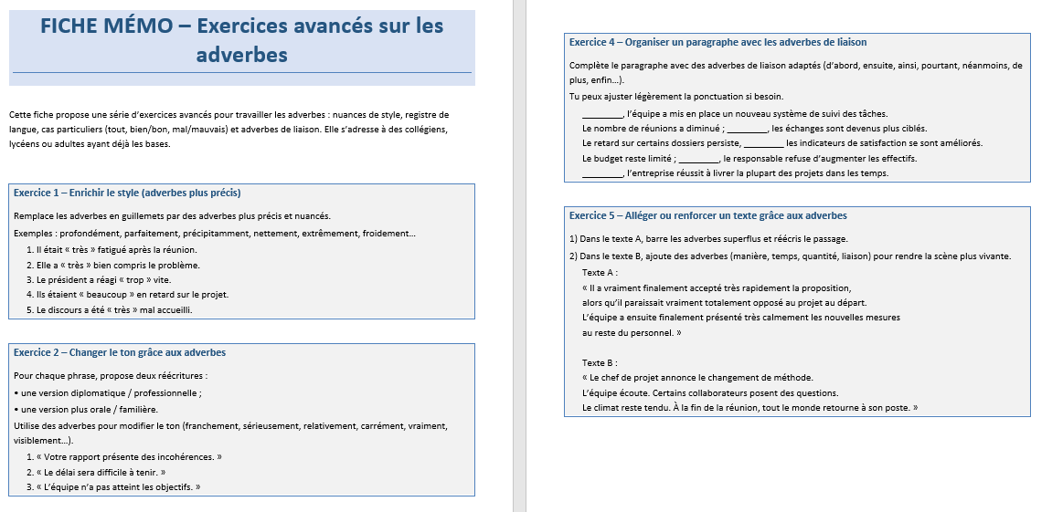 • Utilisez le discours direct pour dynamiser un dialogue et l’indirect pour résumer ou expliquer.