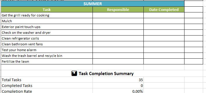 Home Maintenance Checklist template in Excel : Automated, home maintenance checklist and All-Season Checklist