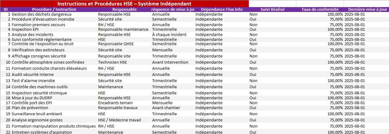 Ce tableau aide à suivre les achats et les ventes effectués par l’entreprise, en enregistrant les détails des transactions.