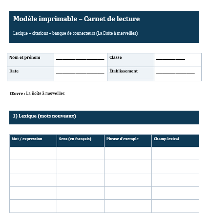 La Boîte à merveilles : lecture aboutie – Pack imprimable : fiches de lecture, analyse d’extrait et révisions