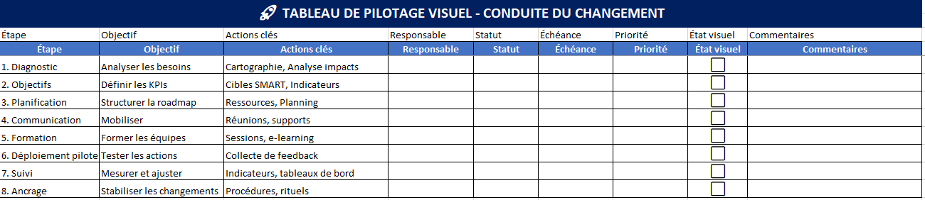 - Absence de suivi post-déploiement : Le changement ne s’ancre pas durablement.