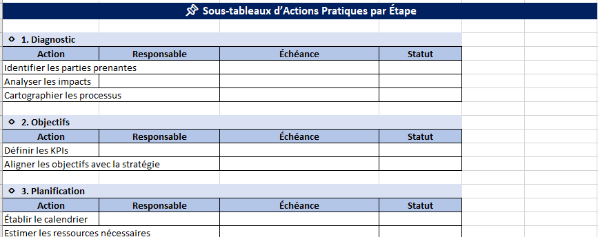 Une démarche efficace allie une méthodologie claire et structurée à un suivi régulier, souvent sous la forme d’une checklist opérationnelle détaillée. Cet accompagnement systématique permet de s’assurer que les changements essentiels sont bien ancrés dans les habitudes de travail de tous les collaborateurs, même face aux aléas inévitables du fonctionnement courant d’une organisation en constante évolution.