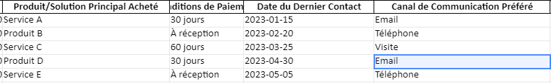 • Canal de Communication Préféré (Email, Téléphone, Visite)