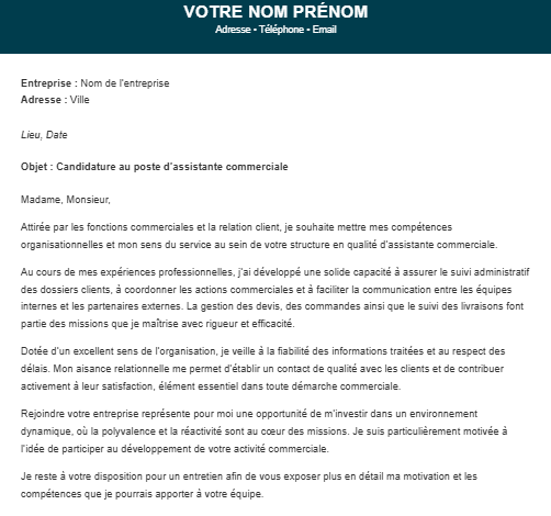 - Une section dédiée au suivi commercial et aux prochaines actions