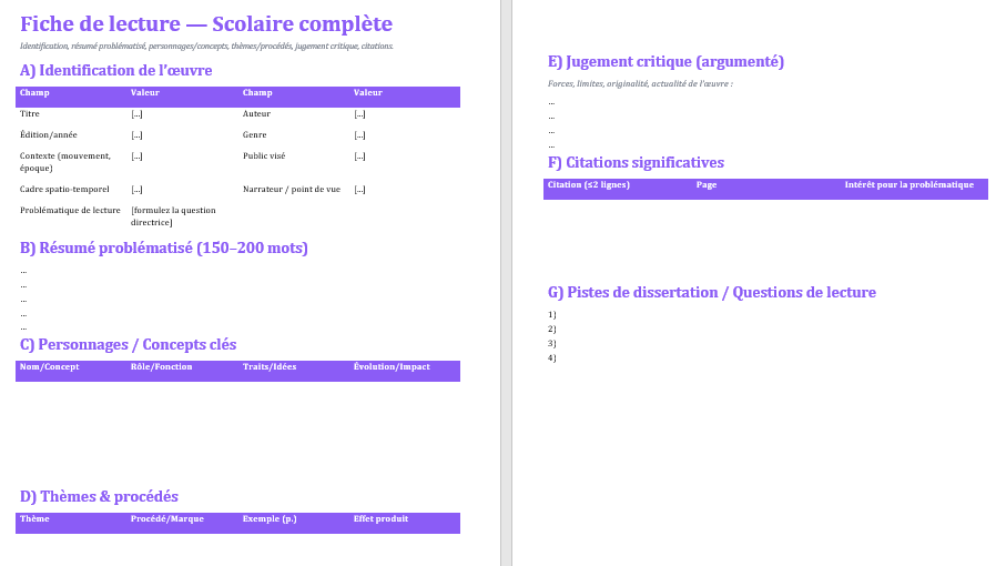 - Temps orienté vers l’aval : la fiche devient un objet d’après-lecture qui vit dans vos projets, vos cours, vos décisions.