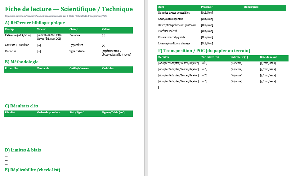 - Transformation : check-list de réplicabilité (matériel, pas-à-pas, critères d’arrêt).