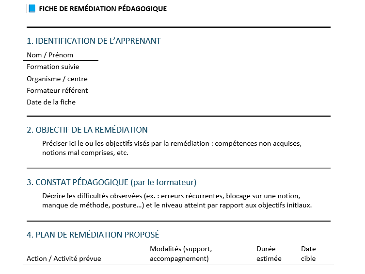 🧩 La fiche de remédiation pédagogique collective : un levier stratégique pour l’efficacité des formations