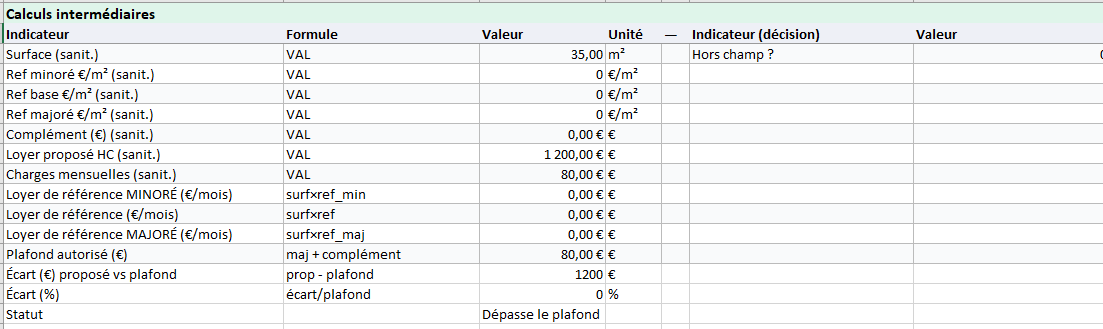 - Dépassement si loyer HC > plafond autorisé.