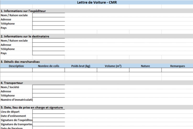 Des sections bien définies (expéditeur, transporteur, destinataire, marchandises).