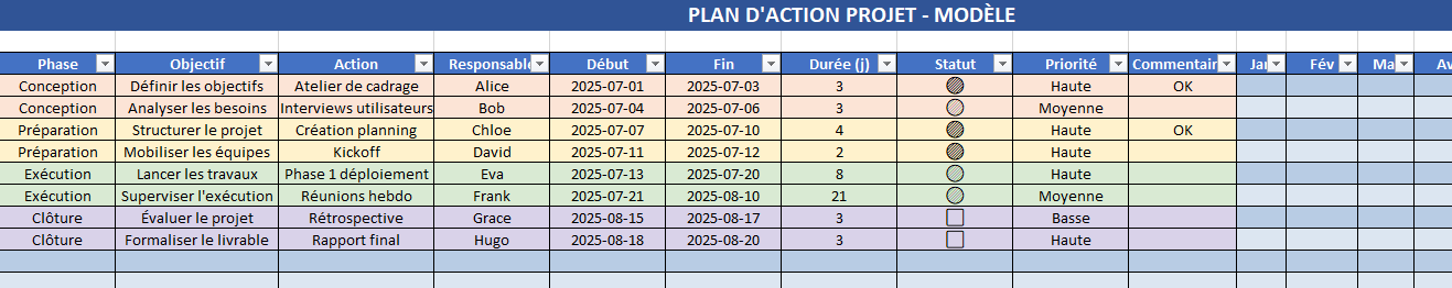 📘 Modèle Excel : Plan d’action projet visuel et dynamique