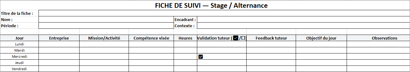 - Stage / alternance : mettre en regard mission, compétence visée, preuve, validation tuteur. Le journal devient matière première pour l’entretien final.