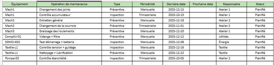 - Plan de maintenance préventive sur Excel Un plan opérationnel prêt à exploiter, avec logique de mise à jour.