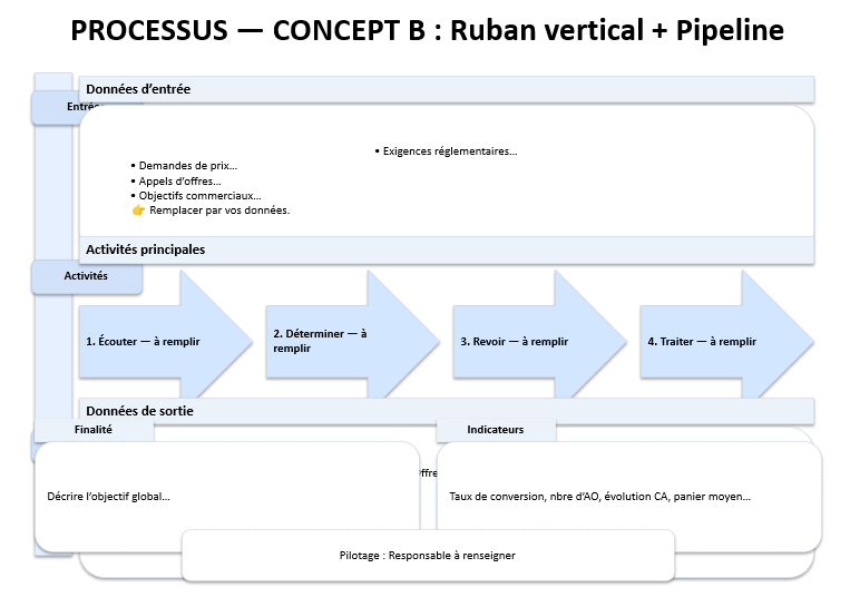 Avec ces étapes, vous pouvez créer un tableau de bord interactif et visuel dans Excel pour suivre les performances de l’approvisionnement en fonction des KPIs. Si vous avez besoin d’un modèle Excel spécifique, faites-le moi savoir et je peux vous aider à le créer.