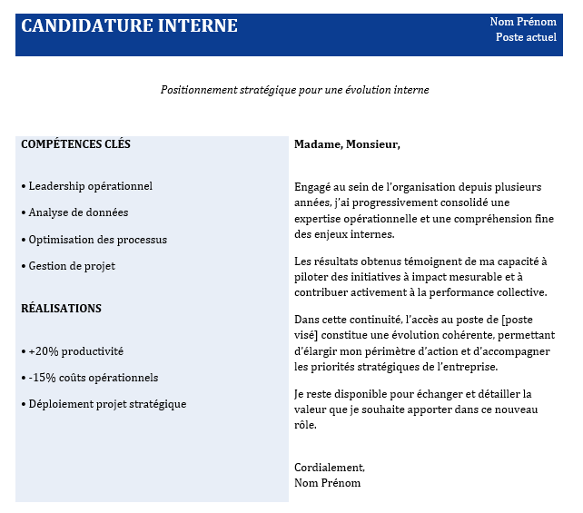 Derrière toute lettre de motivation promotion interne performante se trouve une logique claire :