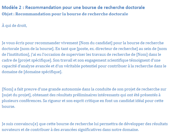 Modèle 11 : Lettre de recommandation pour une bourse doctorale