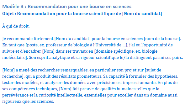 3. Lettre de recommandation pour une bourse d’études à l’étranger