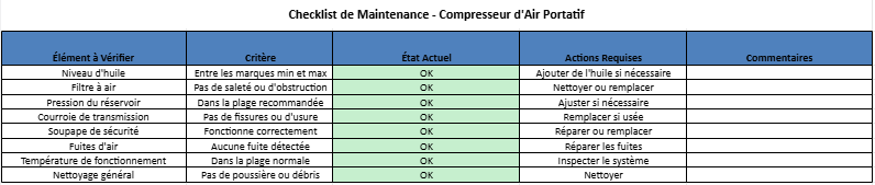 Maintenance et Réparation d’un Compresseur d’Air : Checklist