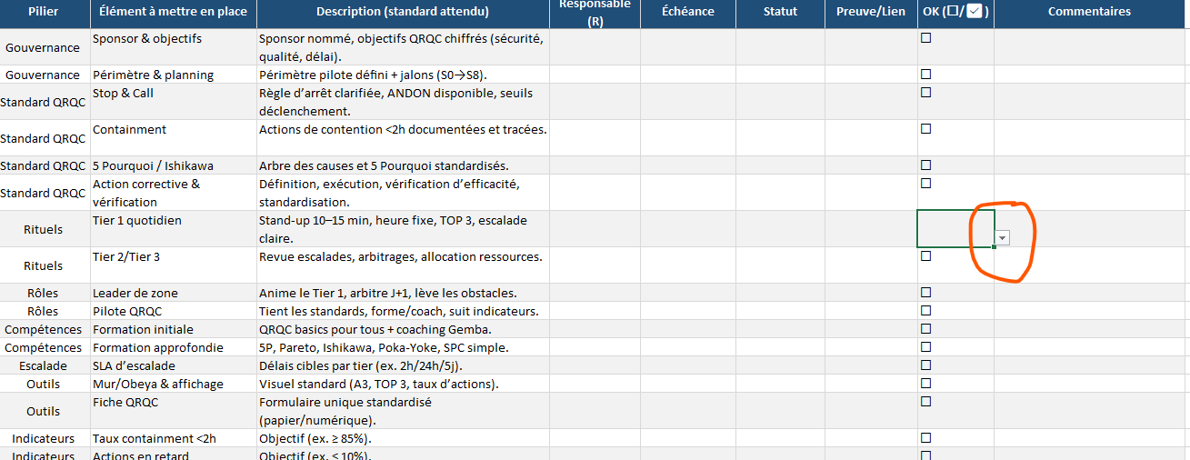 - Demander aux caristes et préparateurs de valider le sens des flux, la largeur des allées, la position des zones tampons.