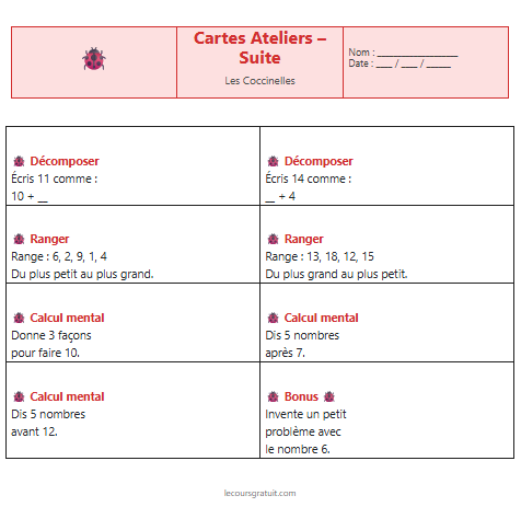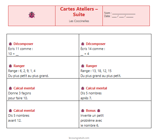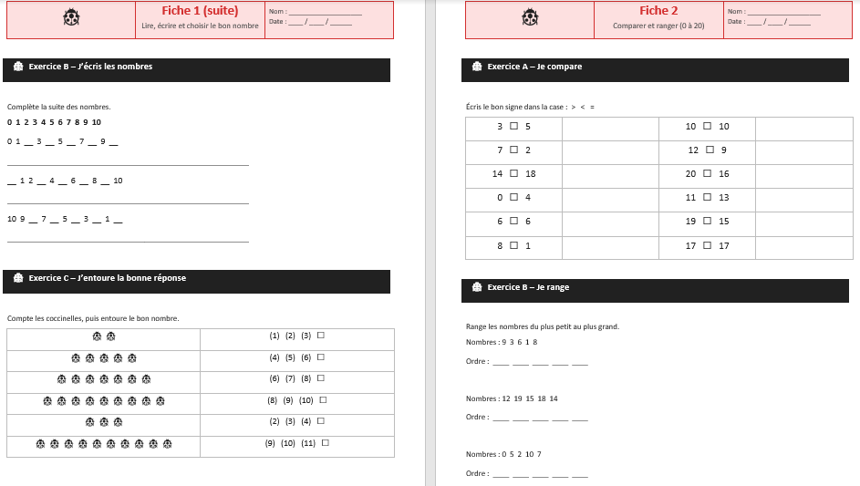 Maths CP “Les Coccinelles” : des fiches Word prêtes à imprimer, au service du programme français