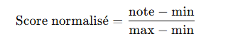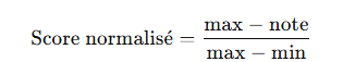 Pour comparer des critères hétérogènes, on ramène chaque note dans [0 ; 1] :