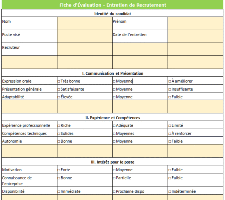 Astuce : documentez des exemples-repères pour chacune des notes 1…5 afin d’éviter l’arbitraire.