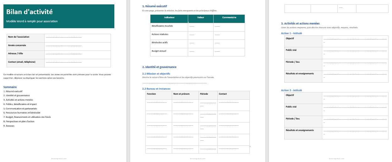 Bilan d’activité pour association : Modèle Word...