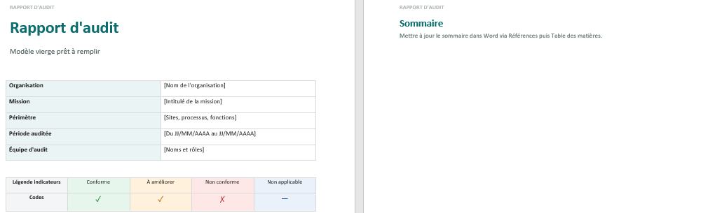 Rapport d’audit vierge Word et PDF +...