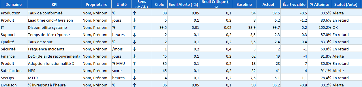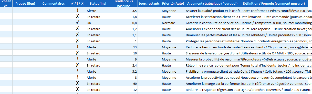- Mise en forme conditionnelle pour repérer visuellement les priorités.