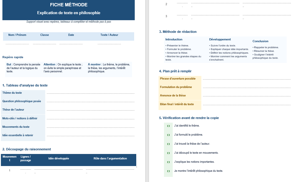 Téléharger une fiche méthode Word d’explication de texte en philosophie ⬇️